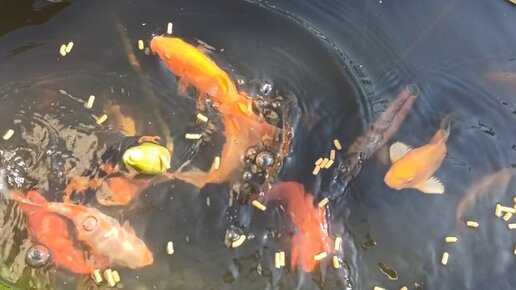 Утреннее кормление прудовых рыб. В мутном омуте кто-то водится)