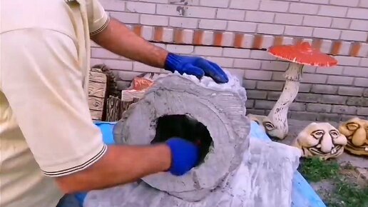 Эту поделку пришлось подарить соседу.Делал добрую для детского сада,а получилась прочная,но злая.Из обрезков сетки и цемента
