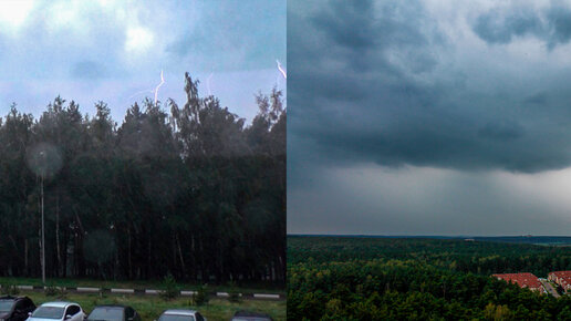 Близкий удар молнии (175 метров)! Гроза⚡ с сильным ливнем и шквалом до 15 м/с. 26 июля 2023 г.