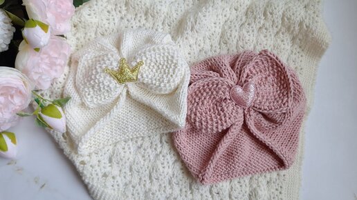 Шапочка чалма спицами. Тюрбан для новорождённых.