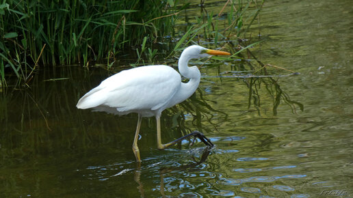 Белая цапля на рыбалке! Мастерство, зоркий глаз и меткий клюв! Павловский парк.