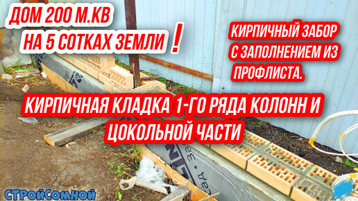Первый ряд кирпичных колонн для забора.