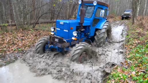 Безбашенный трудяга на тракторе зарубился с джиперами и грузовиком на бездорожье. Трактористу зашло 4х4