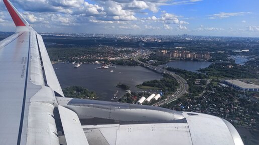 Посадка в "Шереметьево": вид на Клязьминское водохранилище и "консервы" в аэропорту