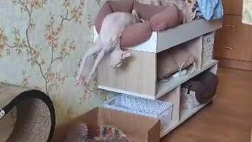 Кошка сфинкс Пуля из питомника бесшерстных кошек Чаликсон отдыхает дома именно так🤣