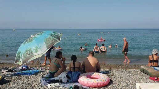 Комфортный берег. Пляж Свирский. Лазаревское Сочи. Утро на море. Погода 8 августа 2023. Жара продолжается +38 С, вода +26 С