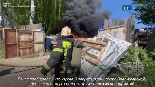 Появились кадры с места крупного пожара на производстве во Владимирской области