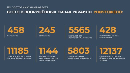 Сводка МО РФ о ходе СВО на 8.08.2023 г.
