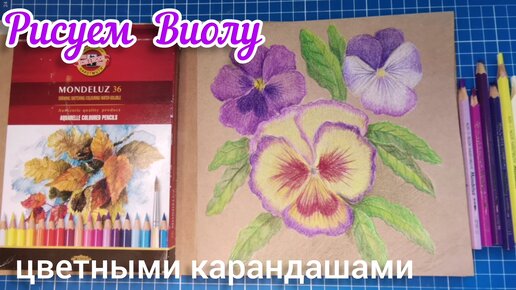Рисунок цветными карандашами "Анютины глазки"