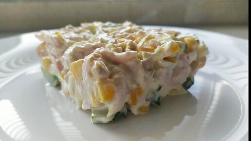 Салат с копчёной курицей и кукурузой.