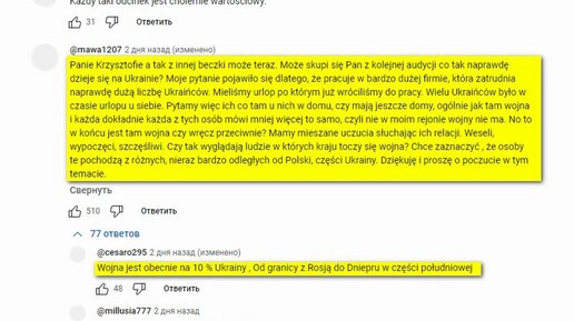 Размышления подписчиков Кшиштофа Яцковского о войне на Украине