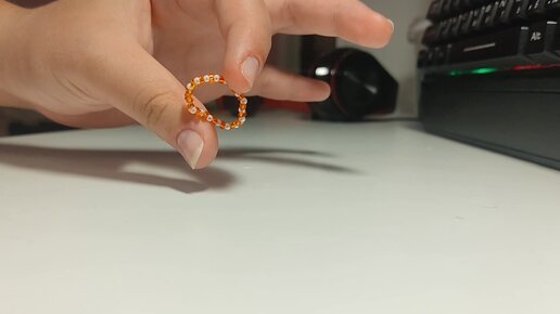 Как сплести Красивое Колечко из Оранжевого Бисера - Лёгкое Плетение из Бисера - Рукоделие