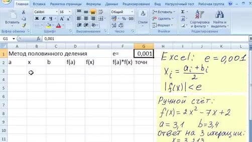 #6 Метод половинного деления Excel Контрольная работа 1 для заочников Численные методы решения нелинейного уравнения