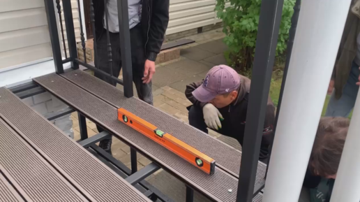 Видео с монтажа крыльца Оптима 4 ступени с площадкой и коваными перилами.
