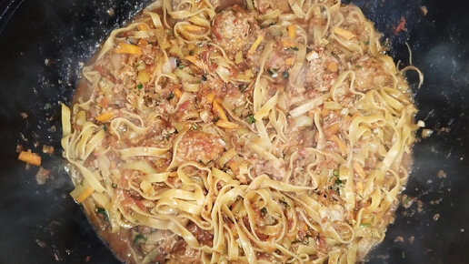 Лапша с фрикадельками в узбекском казане