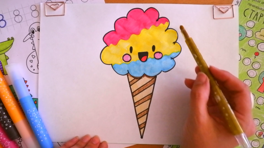 Как нарисовать сахарную вату поэтапно для детей | Как нарисовать сладости | для срисовки | Няня Уля
