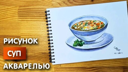 Как нарисовать суп карандашом и акварелью начинающим | Рисунок поэтапно и легко для детей