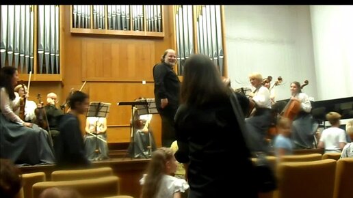 Дирижёр разрешил детям занять места на сцене и даже доверил свою палочку!