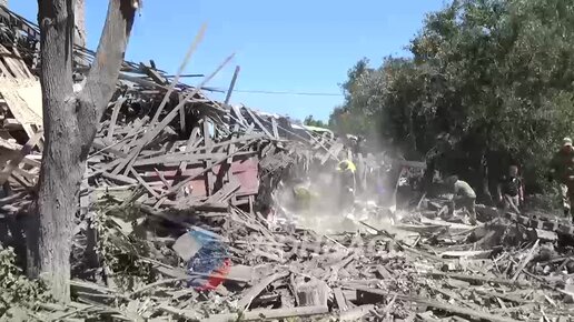 Спасатели продолжают разбирать завалы разрушенного ВСУ дома в Донецке в поисках мирной жительницы