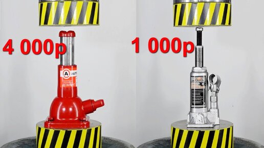 Проверяю разные типы домкратов гидравлическим прессом. Какой выдержит больше?