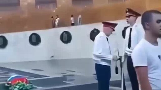 Офицер помогает часовым в почетном карауле