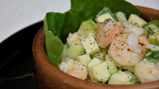 Легкий летний салат с креветками и зеленым яблоком. Заправить можно сметаной или йогуртом. Салаты
