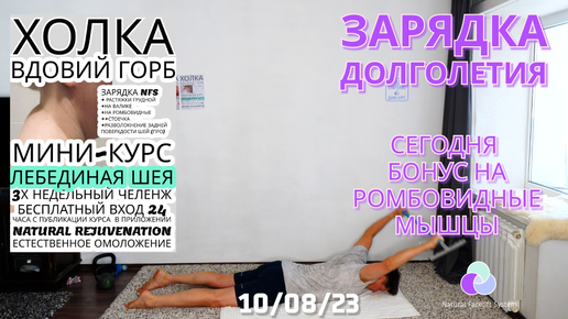 Зарядка долголетия 10.08.23 Лимфодренаж, вращения, растяжки. О холке, на упражнение на ромбовидную мышцу в конце