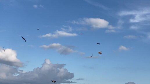 Коршуны добывают еду у туристов на озере Дус-Холь, республика Тыва