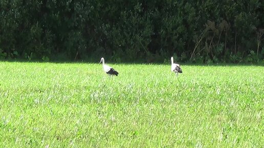 Аисты-сеголетки охотятся на скошенном поле. 07.08.2023. с.Вериговщина, Тосненский р-н Ленинградской обл. (видео автора канала)