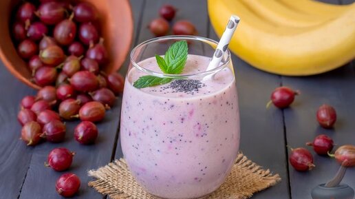 Витаминный напиток и перекус в одном флаконе. Смузи из крыжовника с бананом и маком.