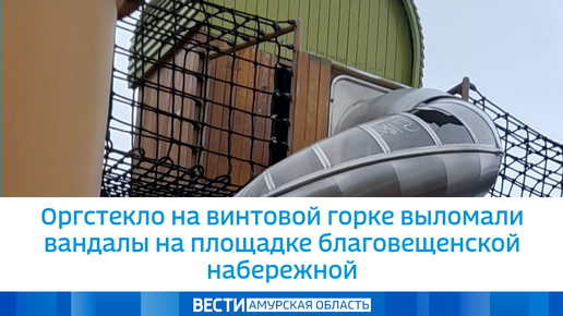 Оргстекло на винтовой горке выломали вандалы на площадке благовещенской набережной