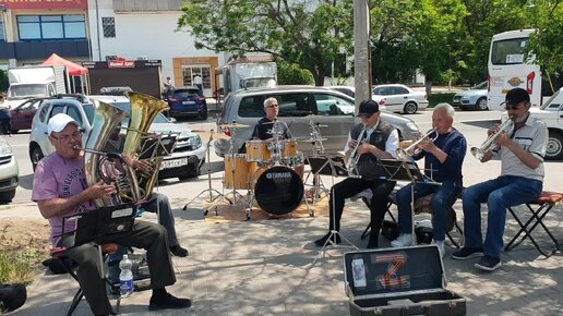 Евпатория, Красная горка. Уличные музыканты - Нам нужна одна победа - из фильма Белорусский вокзал (№5)
