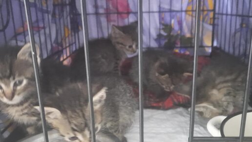 СПАСЕННЫЕ КОТЯТКИ БАРСУЧЕК И ПЯТЬ МАЛЕНЬКИХ "ШПРОТИКОВ" НА КАРАНТИНЕ В КЛЕТКАХ 💖
