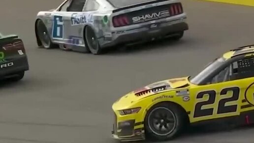 Пилот едва удержал свою машину в гонке 🚗 Джои Логано ушел от столкновения с соперником и смог сохранить контроль, вылетев на траву