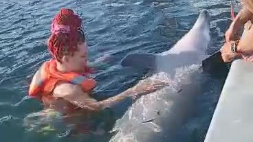 Плавание с дельфином, ч. 3. Чесание пуза тёте Саре.🐬