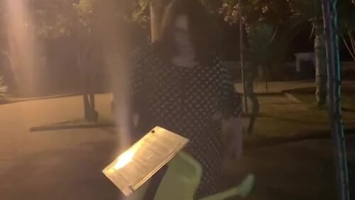 Хибла Герзмава поливает сакуру на набережной Сухума