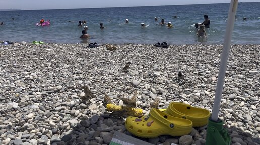 Турция. Средиземное море. Воробьи на пляже едят кукурузу☺️
