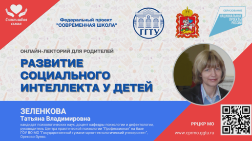 Развитие социального интеллекта (social intelligence) у детей: онлайн-лекторий для родителей. Национальный проект "Образование"