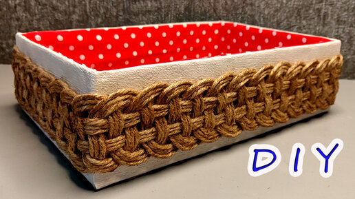Идея как переделать старую коробку с помощью джутовой верёвки