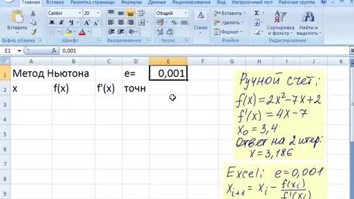 #7 Метод Ньютона Excel Контрольная работа 1 для заочников Численные методы решения нелинейного уравнения