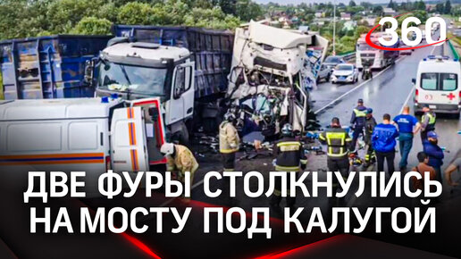 Водители без сознания, дорога в пиве и отходах - фура и мусоровоз столкнулись на мосту под Калугой
