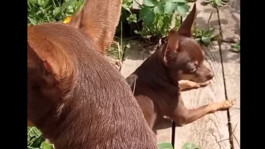 Бимошка и Боня на даче ☀🌳🌿🌺🐶🐾