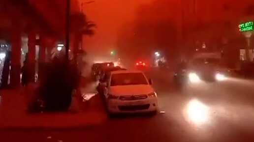 Песчаная буря окрасила небо над Марокко в красные цвета