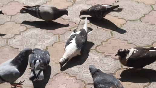 Как мы кормили голубей в парке в городе Симферополе. Голуби почти ручные)