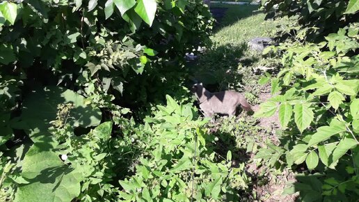 А где Тишка?а вот он в кустах.