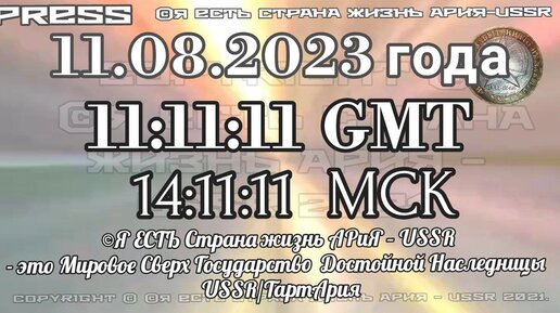Прямой Эфир АРиЯ-USSR 11.08.2023 года в 11:11:11 GMT 14:11:11 МСК👑Сверх Государство
