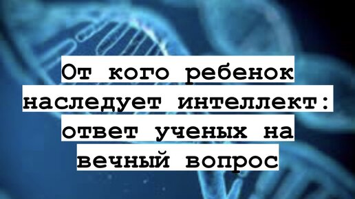 Ученые разрешили вечный спор о том, как наследуется интеллект и харизма. Досмотрев видео до конца, Вы поймете, насколько важен ум супруга!