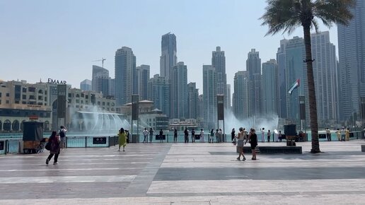 +50 в Дубае. Никого нет возле знаменитых фонтанов.