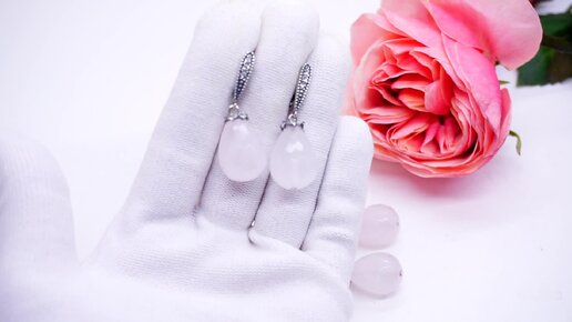 Серьги подвески "Ариадна" розовый кварц посеребрение капля камни 4009 Хорошие Вещи