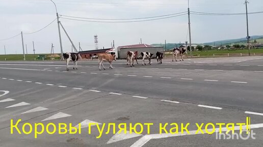 Забайкалье, деревня Знаменка: Коровы на дороге гуляют сами по себе!